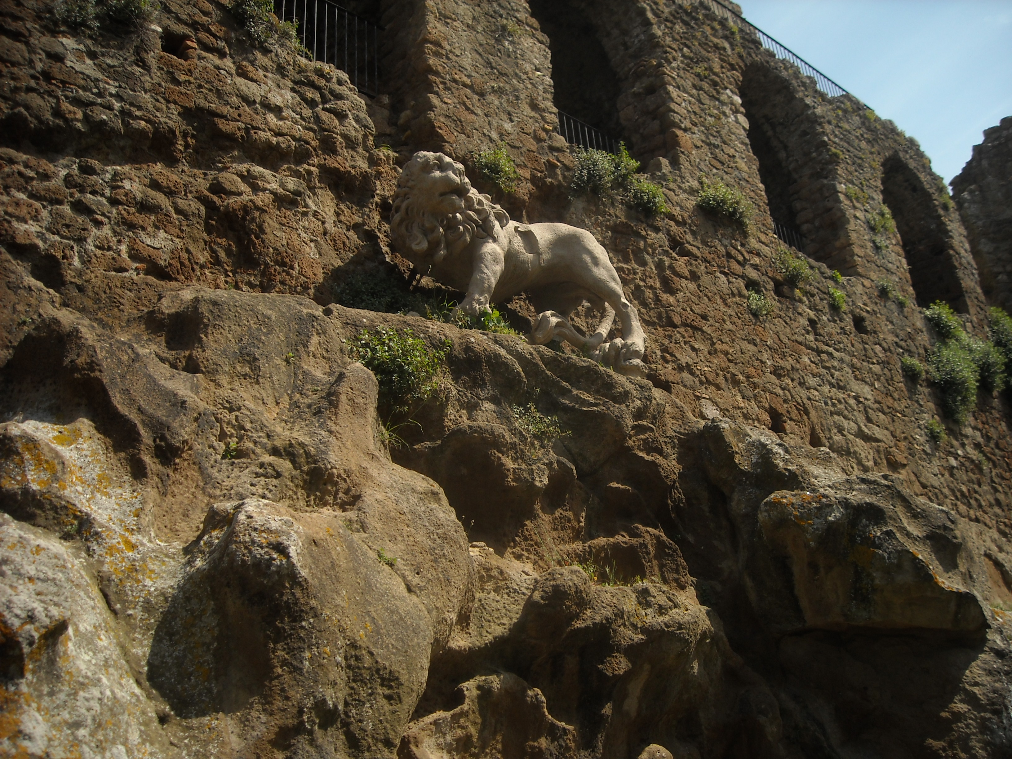 L’insigne architetto abbellì la parete rocciosa con una fontana, sulla cui sommità si trovava un colossale leone di pietra a simboleggiare il feudatario che donava acqua al popolo.