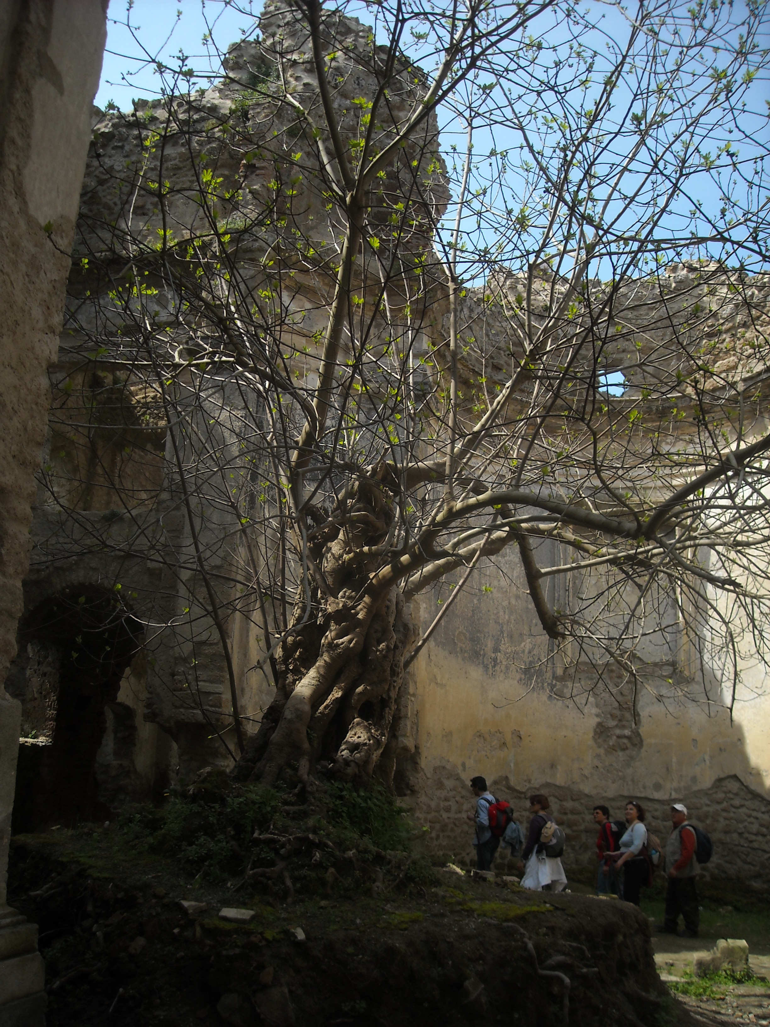 Ci avviciniamo con curiosità alla Chiesa e scopriamo che un fico selvatico ha messo radici all’interno – immagine insolita ma non spiacevole!