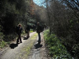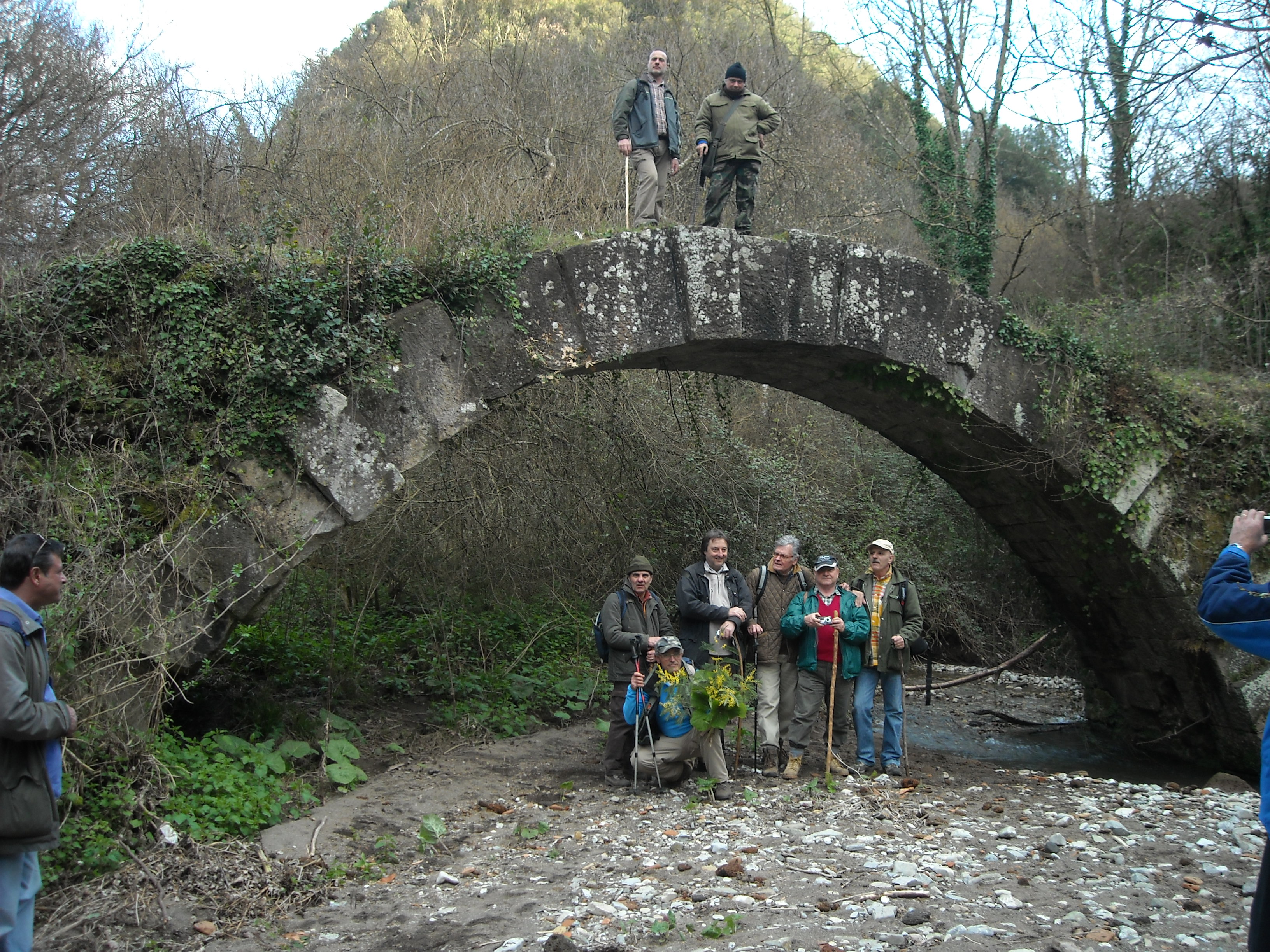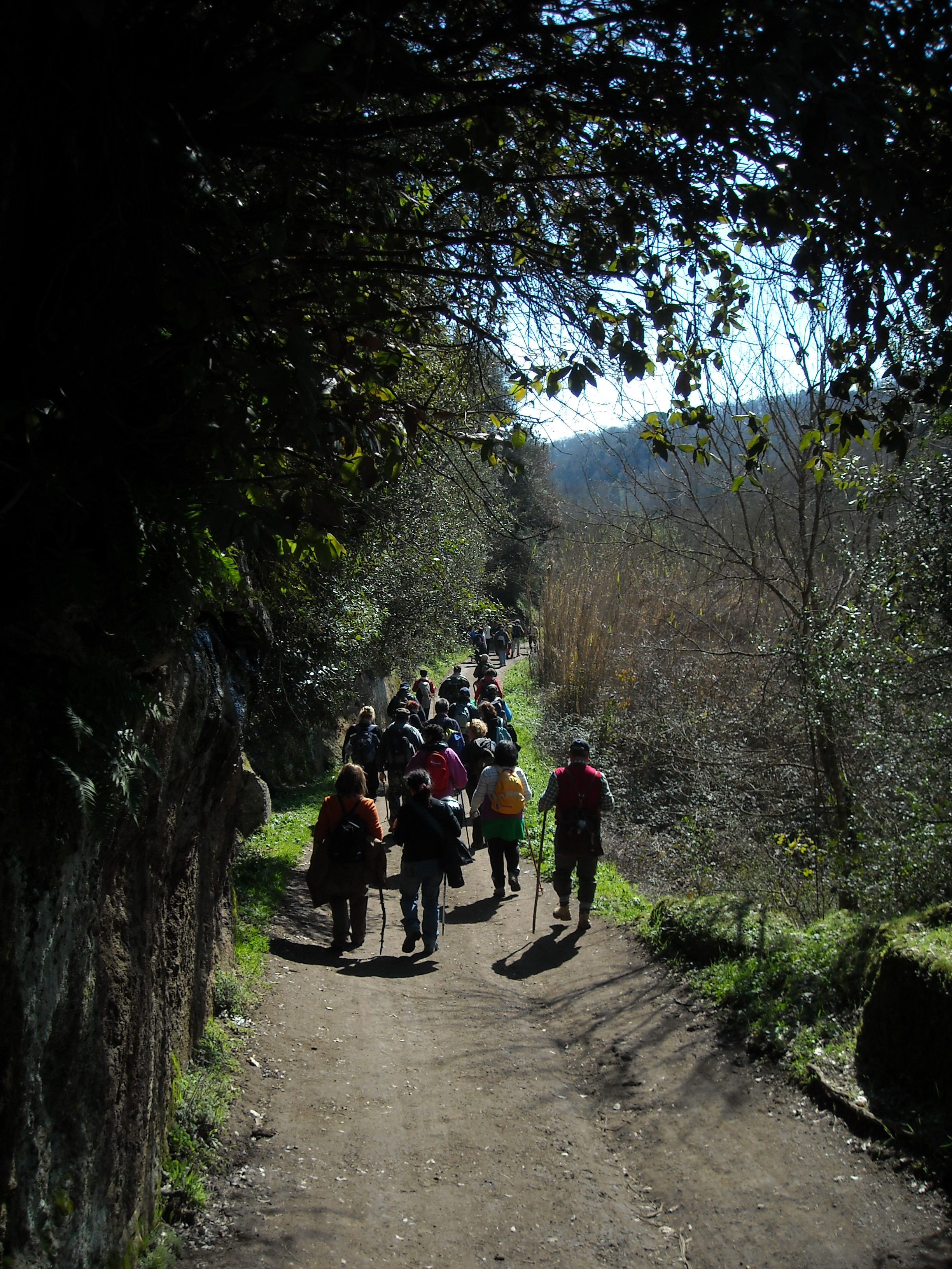 Riprendiamo la Clodia sull’altra sponda, tra fenditure del tufo e massi avvolti dal muschio e comincio a sentir parlare di panini e ricette: è arrivata l’ora di mangiare! Il luogo ideale per la sosta e per ricaricare le forze è il giardino della Chiesetta della Madonna della Selva; noto che i dolci scarseggiano e le signore mi ricordano che siamo in Quaresima – niente golosità per questa volta!
