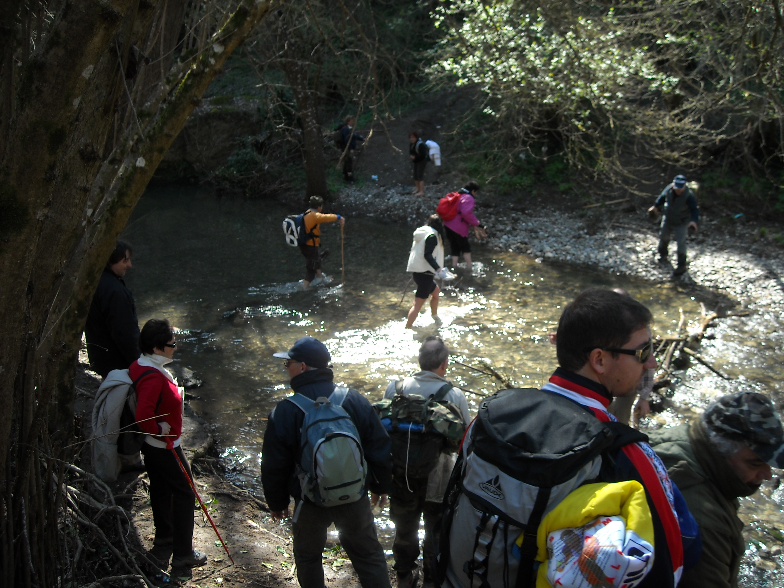E come ogni nostra escursione non poteva mancare il guado, questa volta è il Biedano da attraversare: un gruppo di donne toste, tra cui Simonetta ( sfuggita al controllo dei dottori ) si tolgono calze e scarponi, alla faccia degli uomini che sono ancora sull’altra riva!