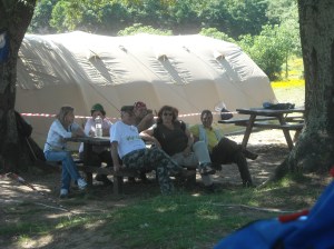 Verso le 15.30 ci hanno raggiunto gli scout del Reparto di S. Gordiano ( CIVITAVECCHIA 4 ) che si sono messi subito all’opera a montare le tende per la sera.