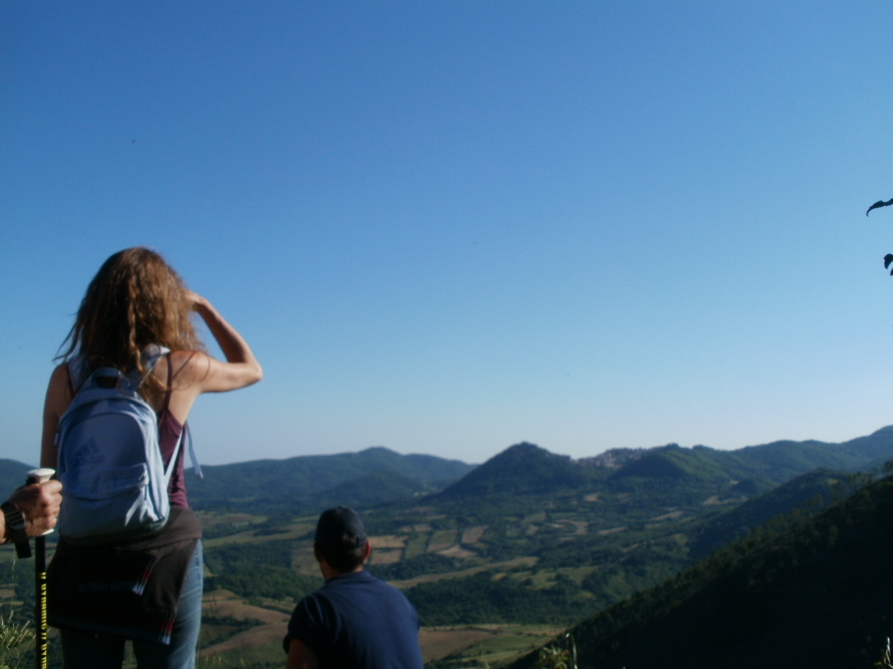 Verso le 16.30 siamo saliti di nuovo sui mezzi della Protezione Civile e ci siamo diretti a Piantangeli, dove abbiamo trovato una distesa di margherite bianche e gialle intorno all’Abbazia: il panorama dall’alto ha fatto il resto.