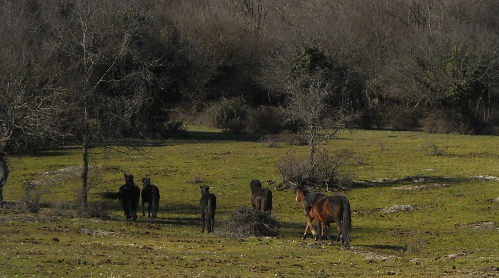 Riprendiamo il passo alternando sentieri nei boschi a piccole vallate fangose, fino a raggiungere un cancello che scavalchiamo divertiti, dove troviamo, sull’altro lato, una mandria di animali in un piccolo bosco.