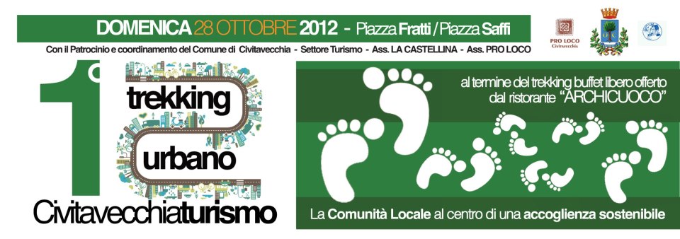 Nell’ambito della giornata Nazionale del Trekking Urbano, anche Civitavecchia organizzerà il giorno 28 ottobre la sua camminata “vagabonding” alla scoperta degli angoli nascosti, delle tradizioni e della storia dei sapori popolari, in collaborazione con l’Associazione LA CASTELLINA.Il trekking urbano è un’attività di TURISMO LENTO e VAGABONDING, che coniuga sport, arte, gusto e voglia di scoprire gli angoli più nascosti e curiosi delle città, attraverso itinerari caratterizzati da leggeri dislivelli del suolo e da scalinate.mo come detto “vagabonding”, libera e ricca di sorprese, adatta a tutte le età, senza un particolare allenamento preventivo.La partenza è prevista alle ore 10.00 da Piazza Fratti, e l’arrivo a Piazza Saffi. I percorsi saranno adatti a tutte le età e condizioni fisiche…portate i vostri figli!Vi porterò a casa del Belli, a scoprire l’ultimo forno pontificio comunitario, la chiesa dei Cavalieri di Malta, la storia del Traiano senza sedie, la lapide della rivolta dei galeotti, il mercato del mercoledì e tante altre “chicche storiche “..due ore scarse tra le pagine più simpatiche della nostra storia..Claudia Tisselli |