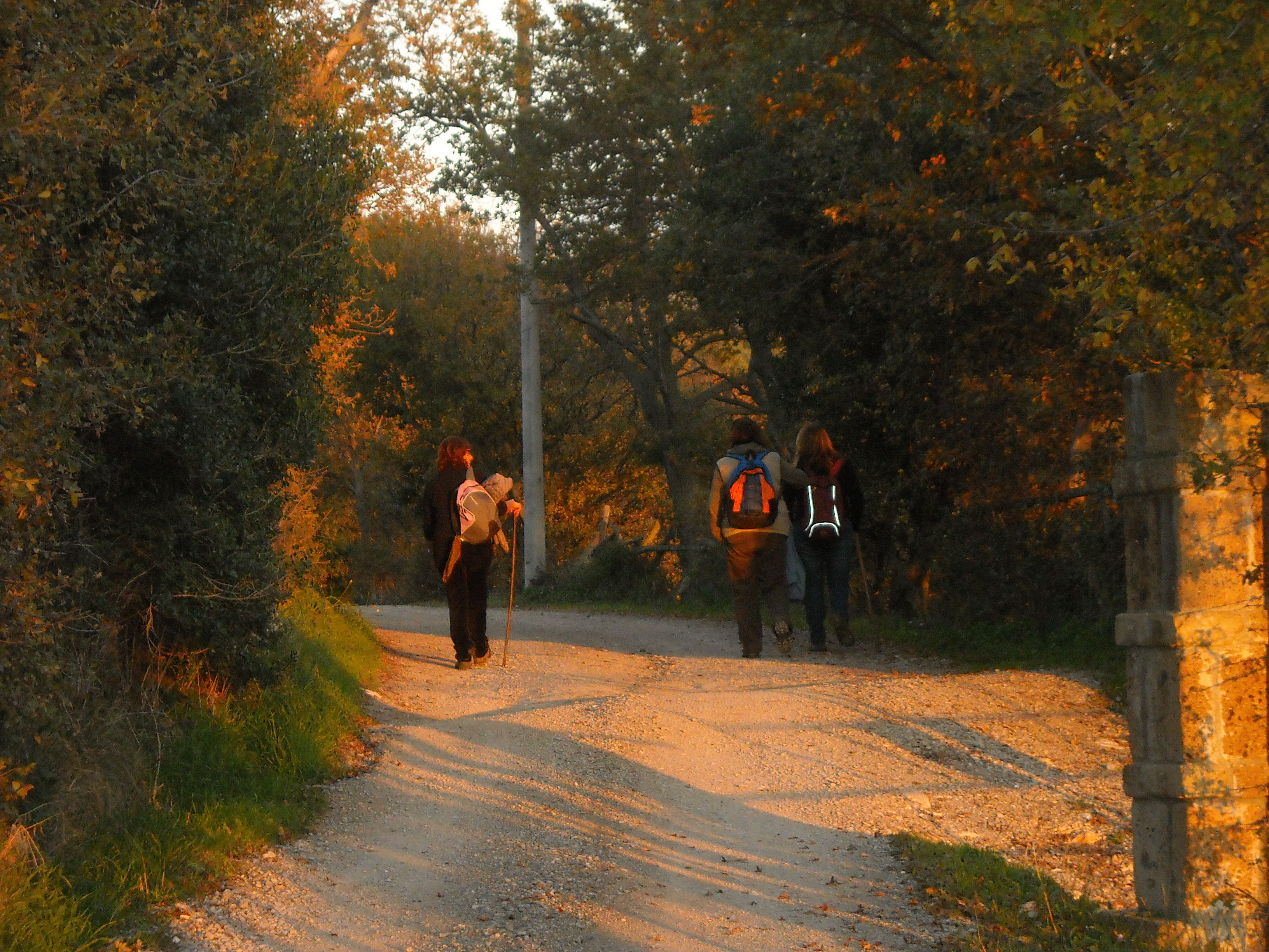 Siamo all’ultimo tratto di strada ed è spettacolare per la luce rossastra che il tramonto ci regala. Rimango indietro con Mara, Annalisa e Marinella che rallentano come me, forse non sono l’unica a non voler tornare a casa, qui è come essere fuori dal tempo, lo stato di grazia spesso finisce non appena infiliamo la chiave nella porta ed allora ce la prendiamo comoda.
